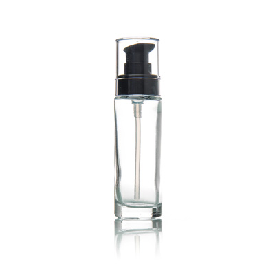 30ml Clear Glass Loretta Bottle with Black Pump and Clear Over cap