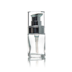 15ml Clear Glass Loretta Bottle with Silver Pump and Clear Over cap